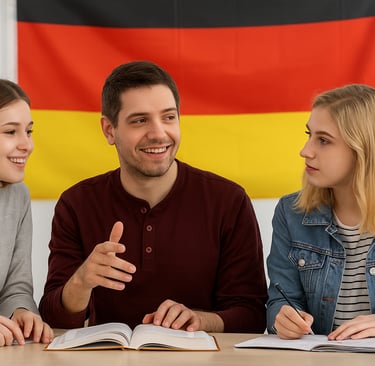Lerne Deutsch in kleinen Gruppen, online oder vor Ort – für Alltag, Beruf und Integration.